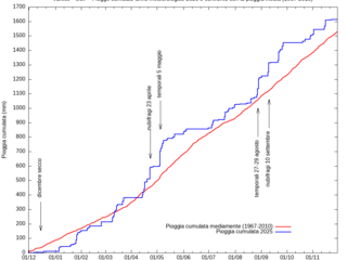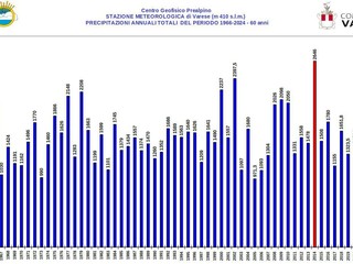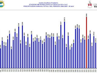 La pioggia cumulata nel corso dell’anno a Varese è stata 1613 mm, solo del 4% superiore alla media. In provincia la precipitazione è variata