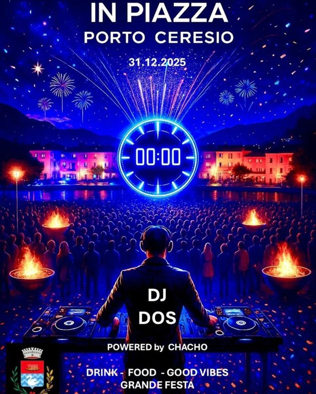 Dalle ore 22, la piazza si trasformerà in un palcoscenico di musica e convivialità. DJ DOS animerà la serata con una selezione musicale coinvolgente, accompagnando il pubblico fino al countdown della mezzanotte.
