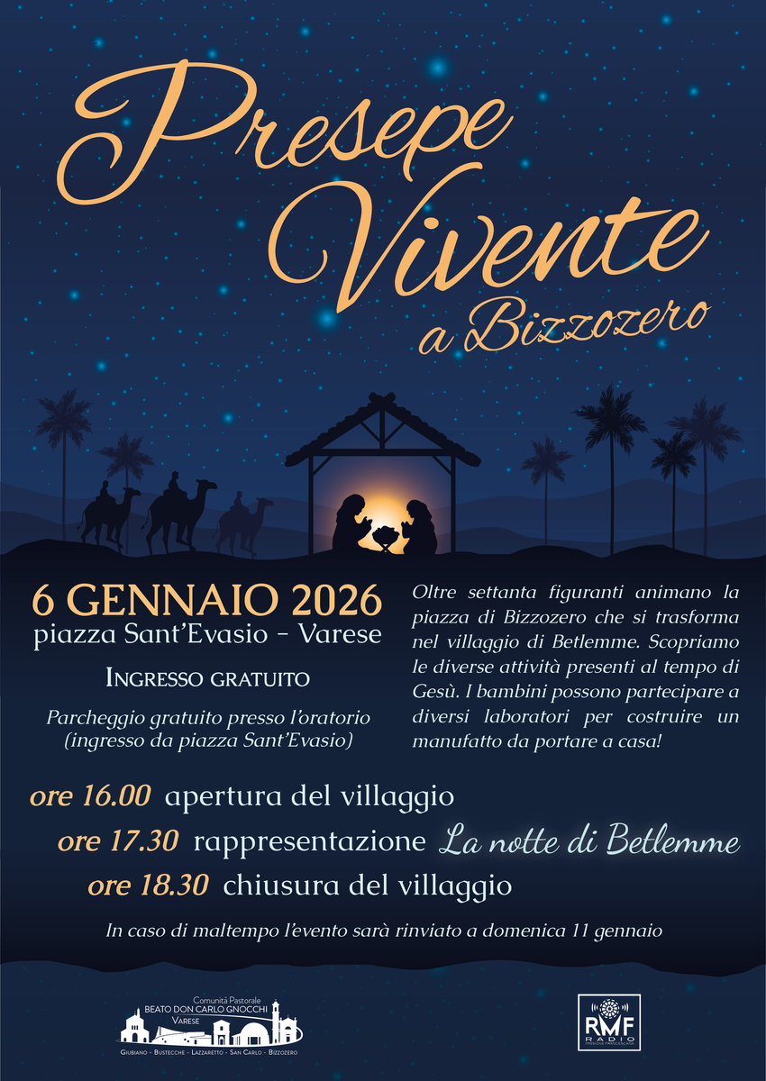 Ha più di sessant’anni, ma continua a sorprendere. Il presepe vivente di Bizzozero, nato alla fine degli anni Cinquanta e oggi promosso dalla parrocchia di Santi Evasio e Stefano di Bizzozero della Comunità pastorale “beato don Carlo Gnocchi” di Varese, con la collaborazione di Radio Missione Francescana, arriva all’edizione 2026 con una proposta ancora più interattiva.