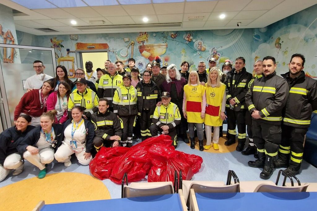 Ad aspettare la Befana c’erano i bambini ricoverati, insieme ai volontari de Il Ponte del Sorriso che da tanti anni collabora con l’Associazione Nazionale Vigili del Fuoco per garantire che la buona vecchina arrivi anche dai piccoli in ospedale.