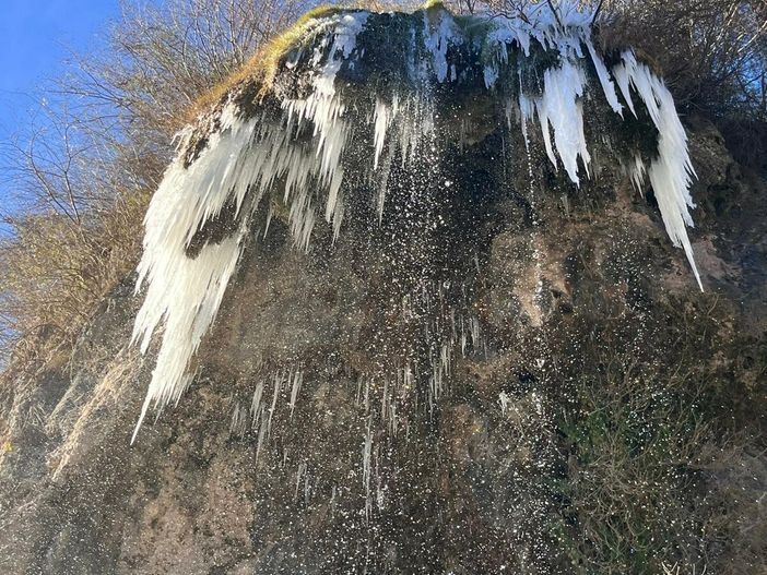 Il rialzo termico degli ultimi anni ha reso la formazione della cascata di ghiaccio un evento sempre più raro e difficile da ammirare. In questi giorni, complice le temperature minime scese abbondantemente sotto lo zero, la cascata è tornata. E questa mattina in molti tra varesini e automobilisti che percorrono la statale 233 della Valganna, si sono fermati per qualche scatto dal sapore decisamente invernale.