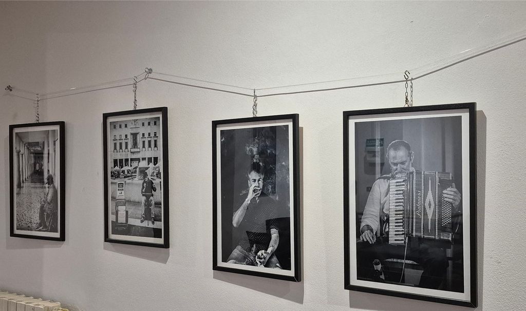 Nella mostra “Musique”, aperta almeno per tutto gennaio con gli orari del bar gestito da Bianca Monzoni, ecco per esempio Lorenzo Bertocchini con la sua armonica, fotografato al Castello di Masnago, la violoncellista Betty Soresina, il fisarmonicista Francesco Nodari, Mario Chiodetti che intona una canzone vicino a un grammofono a tromba, e poi i musicisti di strada fotografati in piazza Monte Grappa e corso Matteotti.