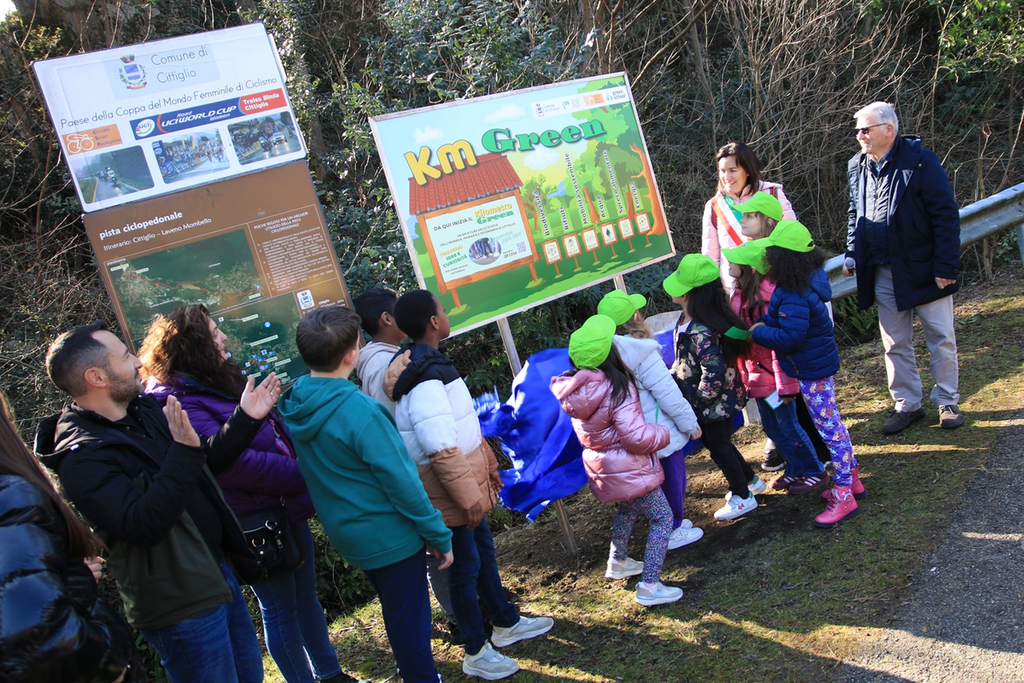 A seguito dell’adesione alla “UCI Climate Action Charter”, la Cycling Sport Promotion riconosce che sono necessarie alcune azioni nel comune di Cittiglio. Saranno coinvolti gli alluni delle scuole di Cittiglio per condividere i vari progetti della scuola, in particolare il “KM Green” lungo la pista ciclabile Cittiglio - Laveno. Il progetto è ampio e coinvolgerà il paese natale di Alfredo Binda. Il KM GREEN è il nome del progetto ideato e curato dagli allievi delle scuole del paese natale di Alfredo Binda, con il supporto della Cycling Sport Promotion e dell’Amministrazione Comunale. Si tratta di un km della pista ciclabile che parte da Cittiglio e porta a Laveno. In futuro in questo tratto bambini e ragazzi delle scuole di Cittiglio, grazie all’esperienza maturata nel progetto Green School, racconteranno come è possibile applicare delle buone pratiche nella vita di tutti i giorni per avere un minor impatto sull’ambiente e promuovere il benessere di tutti gli abitanti della Terra. Presto saranno realizzati dei podcast nei quali non parleremo solo di buone pratiche ma anche curiosità e interviste a persone che per noi sono state e saranno significative nel percorso Green School. Insomma, 1 km che stuzzicherà la curiosità di chi lo percorre. Verranno posizionate delle paline con qrcode collegati a varie puntate di podcast realizzati da dai ragazzi. Tratteranno i seguenti argomenti: Rifiuti, Acqua, Biodiversità, Energia, Mobilità Sostenibile, Spreco Alimentare.