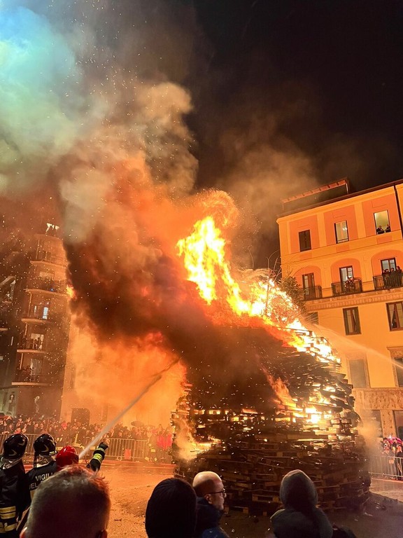 Le pioggia, a quel punto un po' più insistente, non ha rovinato lo spettacolo: le fiamme si sono levate verso il cielo immediatamente e in modo vigoroso, puntando in direzione opposta al centro città, segno di buon auspicio.