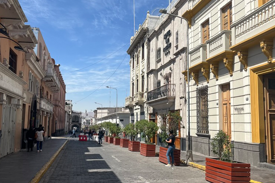 Qui, invece, tutto comincia a salire. Non solo l’altitudine, ma la percezione dello spazio e del tempo. Arequipa non appare come un miraggio nel deserto, non cerca l’effetto scenografico. Si presenta solida, compatta, costruita per durare. I primi quartieri sono disordinati, attraversati da un traffico che sembra ignorare qualsiasi regola, da mototaxi che sfrecciano tra le corsie come insetti rumorosi.