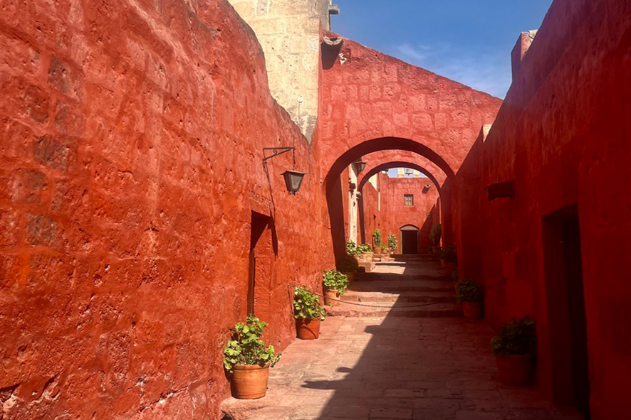 Nel Monasterio di Santa Catalina, questa sensazione si amplifica. I colori esplodono: rossi profondi, blu polverosi, aranci bruciati. È una città nella città, un sistema chiuso che ha scelto la separazione come forma di esistenza. Camminando qui dentro, il tempo sembra sospeso. Non c’è misticismo romantico, non c’è nostalgia. C’è una disciplina radicale, una scelta che oggi appare quasi inconcepibile: sottrarsi al mondo per comprenderlo meglio. Entrare nel monastero non significa visitare un luogo, ma accettare un’altra idea di tempo. Fondato nel XVI secolo come spazio di clausura per donne appartenenti all’élite coloniale, Santa Catalina è stato per secoli un luogo chiuso, autonomo, separato non solo da mura, ma da una posizione radicale. Le celle non erano semplici stanze, ma microcosmi. Ogni monaca disponeva di uno spazio privato, arredato con oggetti personali, piccoli forni in pietra, come quelli che ancora oggi si intravedono negli angoli più appartati. La clausura qui non era povertà, ma rinuncia selettiva: al rumore, al movimento, alla dispersione. Camminando tra i corridoi, si percepisce una disciplina silenziosa, una forma di concentrazione che oggi appare quasi estrema. Il monastero racconta una scelta che non era fuga, ma metodo: un modo per abitare il mondo tenendolo a distanza.