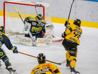 Il sottosopra e il cielo giallonero si toccano in un primo tempo folle. Il fondo di 8 minuti in superiorità (1'36" in 5 contro 3), dopo lo svantaggio dello 0-1 al primo tiro ospite di Pardatscher (tocco sotto porta), senza una vera occasione da gol, anzi rischiando anche lo 0-2 e, poi, in un lampo l'estasi e tutta la follia e la bellezza dell'hockey. Il cielo di due gol gialloneri in 21 secondi in inferiorità numerica, uno su un rigore preso e trasformato da Bastille (1-1 con disco nell'angolino dopo aver spiazzato il portiere), un altro su un magistrale contropiede di Terzago che ruba il disco e parte dalla blu per il 2-1, quindi il tris ancora di Bastille su numero a destra di Buono, che fa sedere mezzo Appiano, smarca Ghiglione per l'assist del 3-1 in nemmeno tre giri di lancetta. Poi ci pensano Eruzione e Williamson con una grande azione a riaprire tutto: 3-2. Prima che Raphael chiudesse tutto: ci perdoni se lo chiamiamo mago, Marco? Pazzie da hockey.