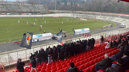 37' Momento di pausa dopo una prima parte targata Varese e una seconda tutta del Sestri, sostenuto da un gruppo di tifosi liguri in curva sud