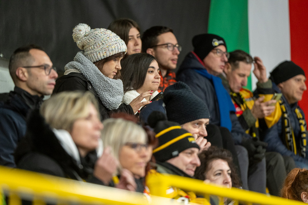 Poi, spazio ai volti del popolo giallonero, che hanno accolto nel giro di pista finale prima il neo arrivato Christian Buono e poi l'Mvp Bastille con il gruppo nel saluto ai quasi 900 spettatori presenti.