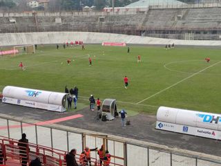 37' Momento di pausa dopo una prima parte targata Varese e una seconda tutta del Sestri, sostenuto da un gruppo di tifosi liguri in curva sud