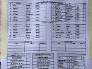 Sestri Levante (3-5-2): Vullnet Tozaj; Pane, Cattaneo, Piazza; Attuoni, Salducco, Garzia (Raggio Garibaldi 15' st), Ferretti, Anzalone; Lunghi, Klimavicius (Pio Loco 15' st). A disp.: Maddazi, Podestà, Masini, Enis Tozaj, Mallamace, Annaloro, Maccioni. All.: Alberto Ruvo
