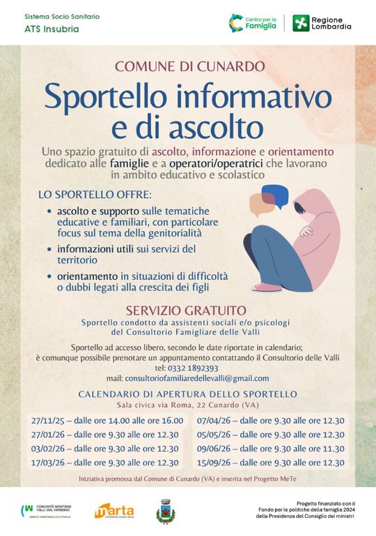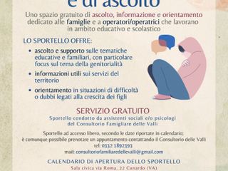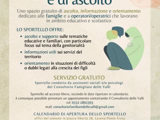 Tali sportelli, totalmente gratuiti e dedicati a famiglie e operatori che lavorano in ambito educativo e scolastico, rappresentano un servizio che caratterizza fortemente il progetto dei Centri per la Famiglia così come è stato pensato da Regione Lombardia e ATS Insubria.