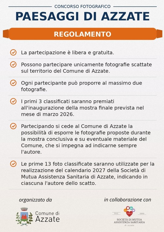 Inoltre, le 13 fotografie migliori selezionate entreranno a far parte del Calendario 2027 della Mutua Socio Sanitaria di Azzate, una realtà storica e preziosa del paese, da sempre al servizio e a sostegno dei cittadini.