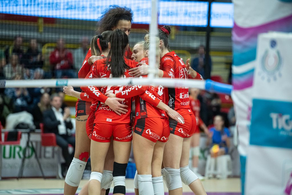 Sul fronte biancorosso, la più continua è stata Torcolacci (11 punti). Molto positiva fino all’epilogo del quarto set anche Parra, terminale offensivo della squadra con 25 punti e ben 61 palloni attaccati: decisivo, però, l’errore sul 20 pari del quarto parziale, che ha segnato una svolta negativa. Da lì in avanti, la schiacciatrice messicana è uscita dalla partita, sbagliando ancora nel finale del game e nel tie-break.
