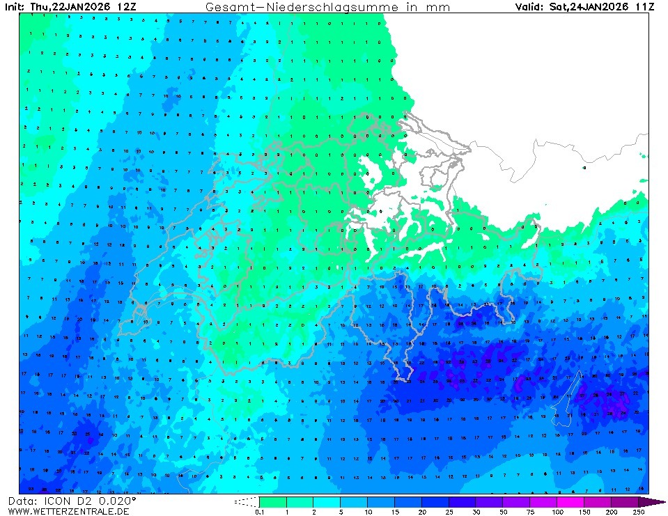 Le sue previsioni, basate sul modello ICON D2, prevedono la possibilità concreta di un'imbiancata anche a quote relativamente basse, nel periodo compreso tra il pomeriggio di domani, venerdì 23 gennaio, e la mattinata di sabato: «Per la nostra zona sono previsti circa 20 mm di equivalente in pioggia - spiega Bertoni analizzando la mappa - Al Campo dei Fiori è presumibile che possano cadere circa 20 cm di neve, come pure al Sacro Monte. Nelle valli previsti circa 10-15 cm (dipenderà se partirà subito neve). A Varese potrebbero cadere 3-5 cm di neve ma soprattutto in questo caso dipenderà molto da come inizierà ed eventualmente a che ora girerà in neve».