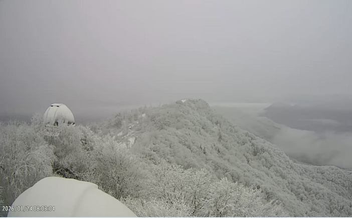 Come da previsione la neve è arrivata ma non a basse quote. Le precipitazioni che hanno interessato il territorio a partire dal caldo pomeriggio di ieri sono cadute in forma nevosa solo da una certa altitudine in su: acqua in città, acqua mista neve nelle vali, un velo di neve al Sacro Monte in serata e neve soprattutto al Campo dei Fiori e su tutte le altre alture, coperte di bianco questa mattina come testimonia la foto del Centro Geofisico Prealpino che pubblichiamo.