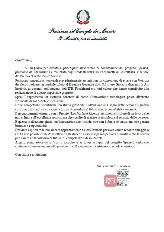 Al plauso di ATS si è unito anche quello del Ministro per le Disabilità Alessandra Locatelli, che ha scritto un messaggio per gli studenti, e di Giuseppe Carcano, dirigente dell’Ufficio Scolastico Territoriale di Varese, e Alessandro Fermi, assessore all’Università, Ricerca e Innovazione di Regione Lombardia, che sono intervenuti in collegamento.