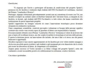 Questo è il caso anche del progetto “Speak‑I”, realizzato lo scorso anno dagli studenti di una delle classi di robotica per aiutare un compagno con disabilità motoria e verbale a comunicare con maggior semplicità all’interno della classe. Un progetto che si è già distinto lo scorso anno per la conquista di prestigiosi traguardi, come Premio Nazionale Innovazione Digitale a Roma, il premio “Enrico dell'Acqua” del comune di Busto e quello “Lombardia è Ricerca” della Regione Lombardia.