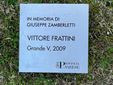 L’artista Frattini, insieme al presidente Magrini e al prefetto Pasquariello, ha svelato la targa affissa alla scultura riportante la dicitura In memoria di Giuseppe Zamberletti - Vittore Frattini - Grande V, 2009.