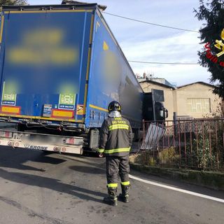 Tir resta incastrato all'incrocio: per liberarlo servono i vigili del fuoco