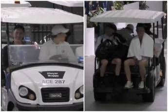 Sinner si è quindi sistemato al volante e dopo una rapida manovra ha caricato il resto del team, compreso l'allenatore Simone Vagnozzi e il preparatore atletico Umberto Ferrara, che si sono accomodati nei sedili posteriori. Dopo una rapida chiacchierata con un membro dell'organizzazione, forse proprio per chiedere indicazioni 'stradali', Sinner è sfrecciato via imboccando la via per i campi dove sosterrà un primo riscaldamento per prepararsi al meglio alla sfida con Shelton.
