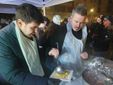 Poi spazio alla mega risottata in piazza Vittorio Emanuele: 180 kg riso, 25 di burro, 85 kg luganega