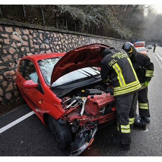 FOTO. Auto contro il muro sulla statale di fronte al birrificio Poretti: ferita ragazza di 23 anni