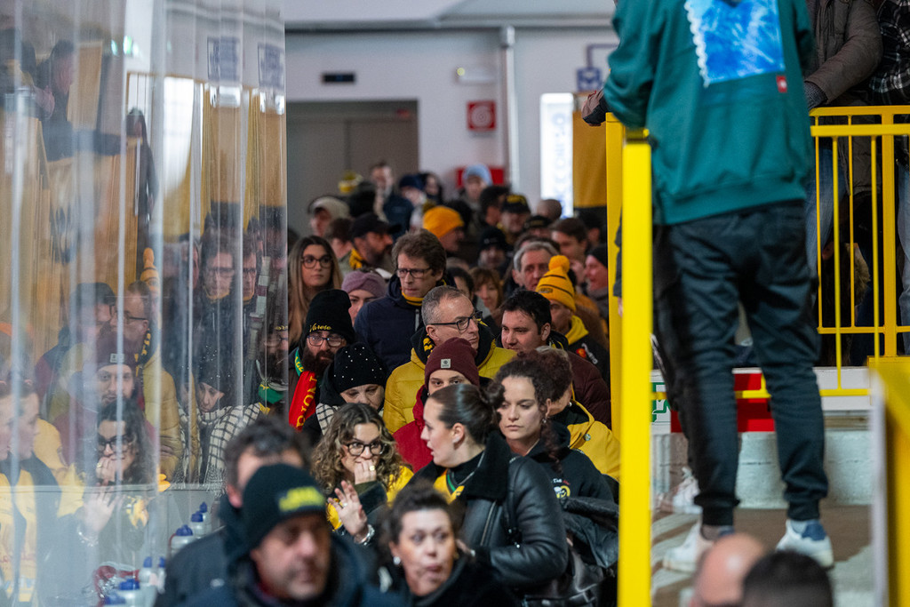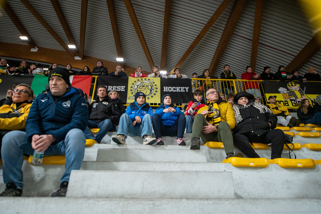 Ecco i volti degli oltre settecento spettatori che non hanno abbandonato i gialloneri nemmeno un giovedì feriale per la vittoria contro le Linci. Le bellissime parole di Michael Sullmann Pilser e di coach Ambrosi a Roberto Vedani: «Le assenze? Non trovo scuse, giochiamo al 100% con chi c'è. Ogni partita di questo master round è una battaglia per tutti. Rispetto all'ultima sfida giocata qui, ho visto un bel Varese che ha pattinato e lottato di più»
