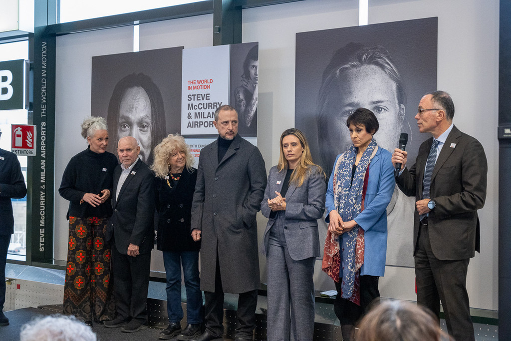 All’inaugurazione sono intervenuti Francesca Caruso, assessore alla Cultura di Regione Lombardia, Elena Buscemi, presidente del Consiglio comunale di Milano, Armando Brunini, amministratore delegato di Sea Aeroporti di Milano, la curatrice Biba Giacchetti e lo stesso Steve McCurry.