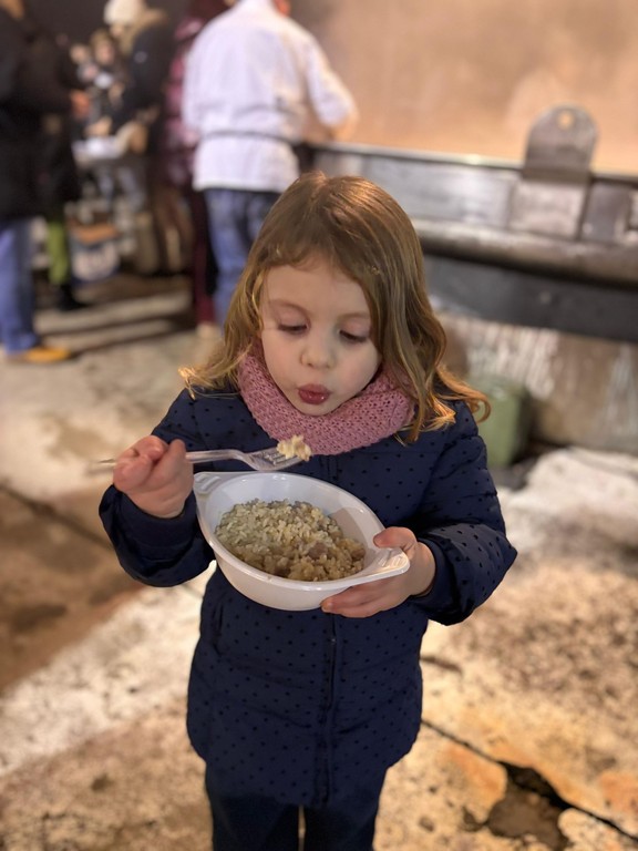 La Giöbia resta così un rituale sentito e partecipato, capace di trasformare un’antica tradizione contadina in un messaggio attuale. Lo hanno ricordato anche i volontari e la Pro Loco, che ogni anno rendono possibile la serata, e le istituzioni religiose presenti, sottolineando il valore di una tradizione che continua perché sa rinnovarsi senza perdere la propria anima. E poi l’immancabile risotto con la luganega, servito a tutti: famiglie, bambini con gli occhi fissi sulle scintille, anziani che nella Giöbia rivedono frammenti della propria storia.