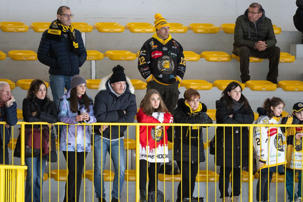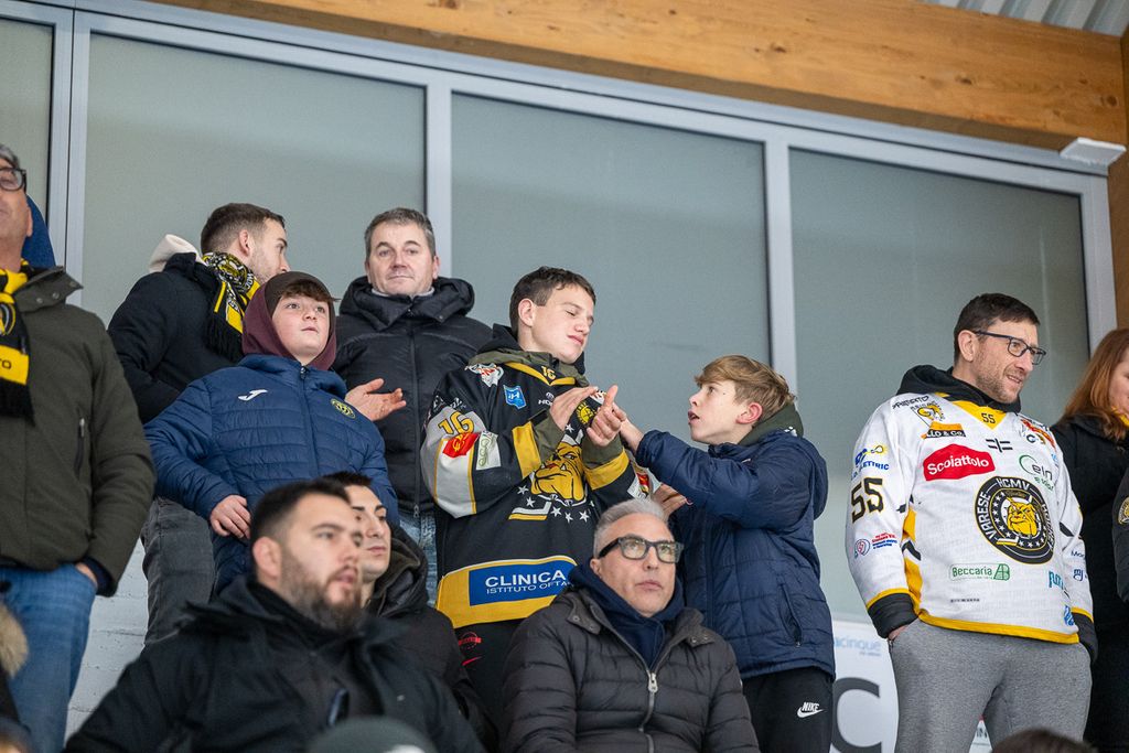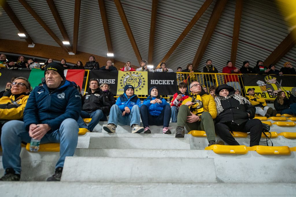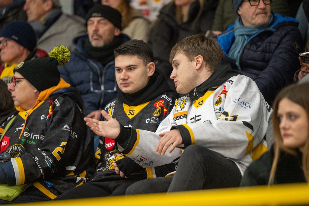 Ecco i volti degli oltre settecento spettatori che non hanno abbandonato i gialloneri nemmeno un giovedì feriale per la vittoria contro le Linci. Le bellissime parole di Michael Sullmann Pilser e di coach Ambrosi a Roberto Vedani: «Le assenze? Non trovo scuse, giochiamo al 100% con chi c'è. Ogni partita di questo master round è una battaglia per tutti. Rispetto all'ultima sfida giocata qui, ho visto un bel Varese che ha pattinato e lottato di più»