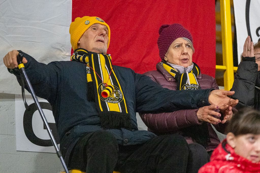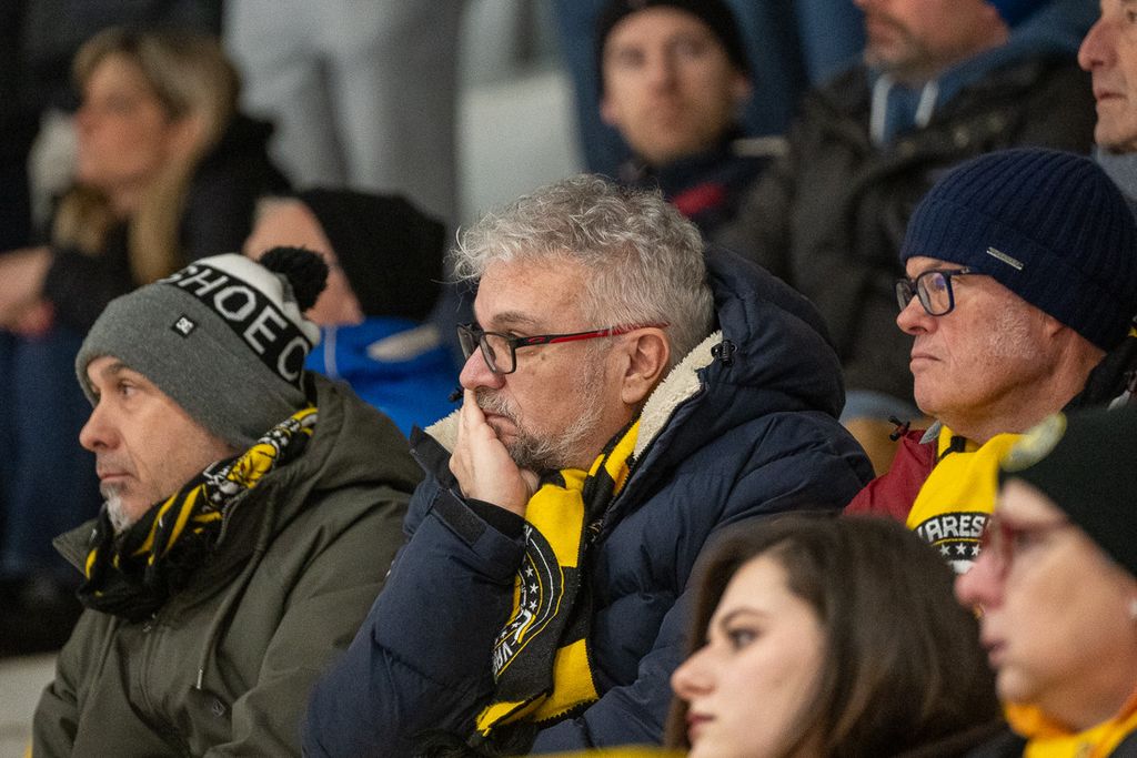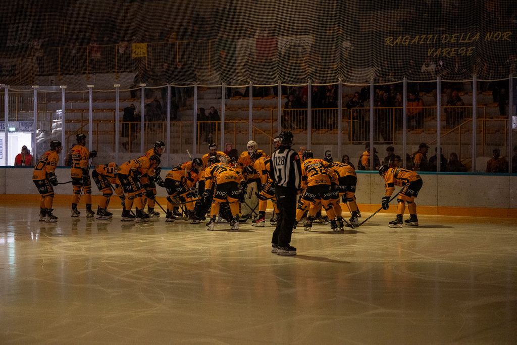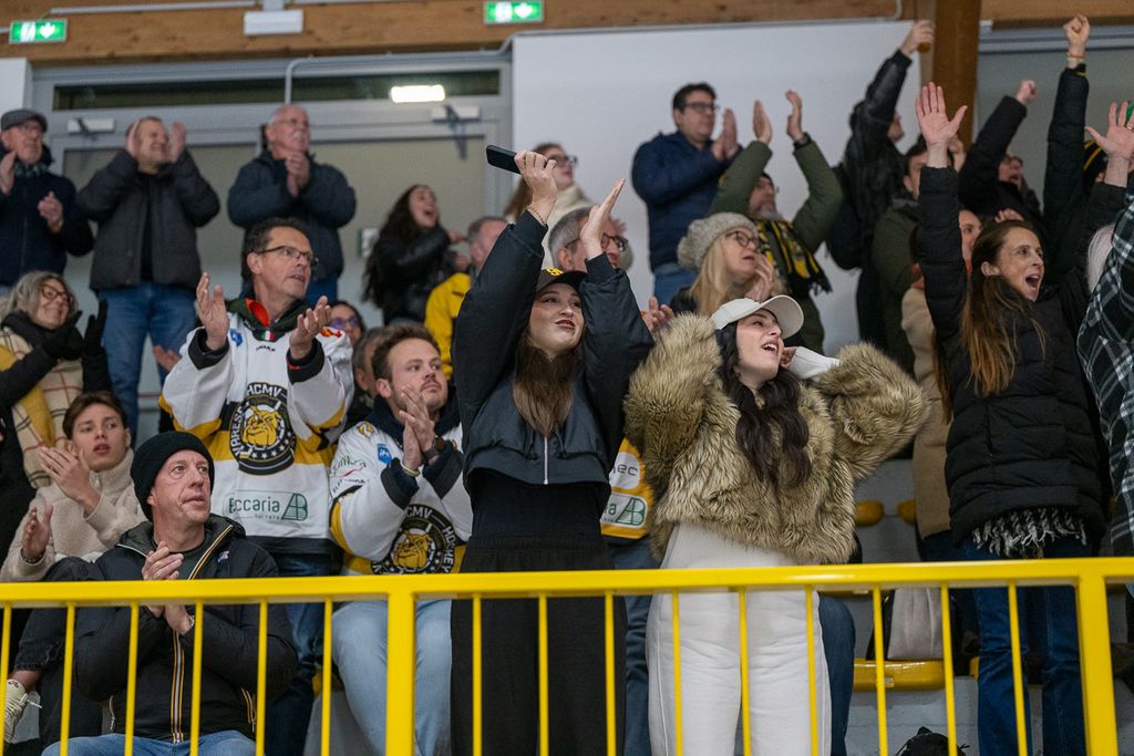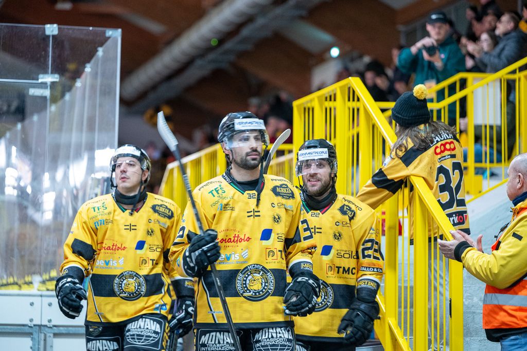 Ecco i volti degli oltre settecento spettatori che non hanno abbandonato i gialloneri nemmeno un giovedì feriale per la vittoria contro le Linci. Le bellissime parole di Michael Sullmann Pilser e di coach Ambrosi a Roberto Vedani: «Le assenze? Non trovo scuse, giochiamo al 100% con chi c'è. Ogni partita di questo master round è una battaglia per tutti. Rispetto all'ultima sfida giocata qui, ho visto un bel Varese che ha pattinato e lottato di più»