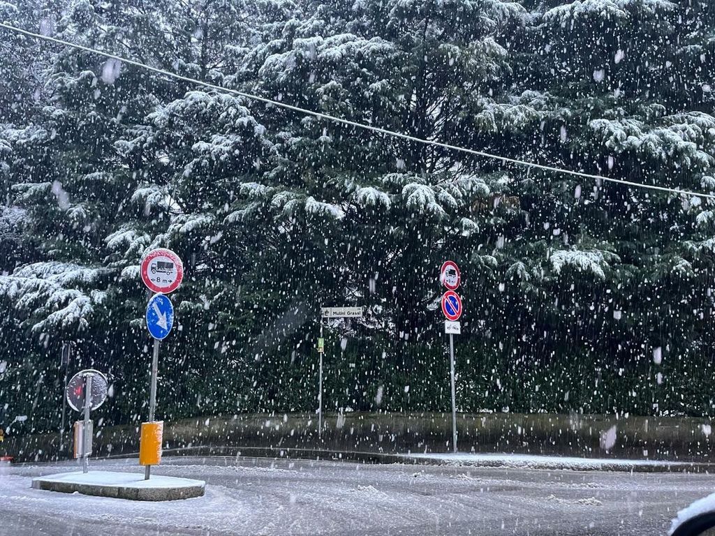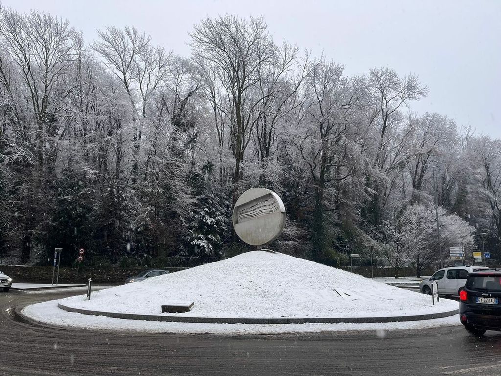 Grossi e pesanti fiocchi cadono su tutta la città e, più morbidi, nei quartieri di collina, nelle valli - dove in alcuni casi si sono già superati i 5 centimetri di coltre bianca -, al Sacro Monte e al Campo dei Fiori. Il traffico causa neve è rallentato in parecchie zone del capoluogo, anche per l'arrivo degli studenti e l'ingresso nelle scuole.