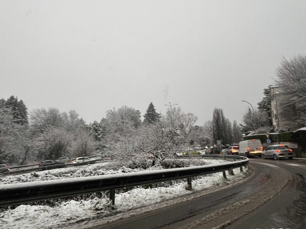 Mentre in centro a Varese la nevicata perde intensità, continuano le segnalazioni di problemi alla circolazione sulle principale arterie stradali della città. Disagi sono riportati dalla statale 233 con traffico in coda questa mattina intorno alle 8.30 in direzione di Lavena Ponte Tresa, come riportato da alcuni nostri lettori. Alcuni automobilisti segnalano in redazione traffico bloccato anche sulla strada principale che collega Gazzada a Varese, come testimonia la foto inviataci: