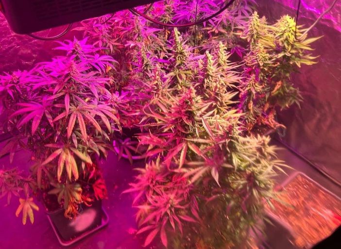 L'attività di ricerca ha permesso di rinvenire immediatamente sul tavolo della zona giorno diverse dosi di cocaina e hashish. Gli agenti hanno approfondito il controllo nelle altre stanze ed all'interno della cameretta hanno scoperto una vera e propria piantagione "indoor": una tenda professionale per la coltivazione (grow-box) dotata di sofisticati impianti di illuminazione, aerazione e riscaldamento, dove l’uomo stava coltivando 6 piante di marijuana, alte circa 60 centimetri e in pieno stato vegetativo.