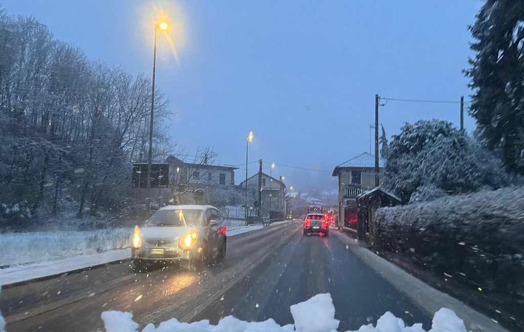 Grossi fiocchi e pesanti cadono su tutta la città e, più morbidi, nei quartieri di collina, nelle valli - dove si contano già più di 5 centimetri di coltre bianca -, al Sacro Monte e al Campo dei Fiori. Il traffico causa neve è rallentato in parecchie zone del capoluogo, anche per l'arrivo degli studenti e l'ingresso nelle scuole.