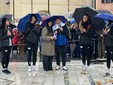 Ore 10.56 Come da programma la Fiamma Olimpica è partita da Beata Giuliana ed è diretta nel centro di Busto. Tantissimi bambini, una folla che resiste anche sotto il martellare della pioggia. Grande tifo anche da e per la Uyba, in piazza Santa Maria.
