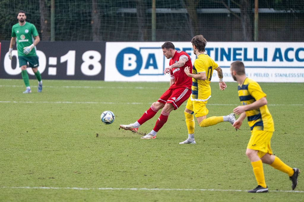 Nonostante le pesantissime assenze (Cocuz e Gabrielli squalificati, oltre agli infortunati Silla, Minuzzi - quest'ultimi due in panchina - e Fiorella), la squadra di Gatti dopo una prima fase tatticamente perfetta mette a segno l'uno-due decisivo a cavallo dei due tempi: prima è Monteiro Barbosa a insaccare di testa il pallone messo in area da Gasparri, poi è Puka, sempre con un inzuccata imparabile, a firmare il raddoppio a inizio ripresa sull'assist di Guidetti.