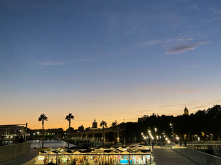 La spiaggia di Málaga è quotidianità: sabbia dorata, mare piatto, famiglie e nessuna estetica turistica. È uno spazio che va solo vissuto. Arriva la sera. Le luci scaldano le facciate, i passi si fanno più lenti, le ombre diventano morbide. La cattedrale emerge come una presenza luminosa, da osservare più che da vivere questa volta. Nelle strade il rumore cambia ritmo, la festa disorganizzata diventa protagonista. Nessuna regia, solo flusso urbano in continuo movimento. Málaga non prepara la notte. La lascia succedere, come tutto il resto. Quello che resta, alla fine del viaggio, non è un’immagine precisa da portare a casa. È una somma di piccole istantanee: un panino mangiato in piedi, un negozio con un’insegna fatta a mano, una strada imboccata senza motivo, il mare che compare all’improvviso tra due palazzi. Málaga non si impone, ma si deposita negli occhi e nel cuore.