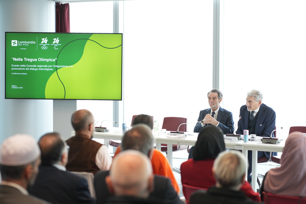 È stato presentato oggi a Palazzo Lombardia l’evento 'Nella Tregua Olimpica', in programma giovedì 12 febbraio, promosso dalla Consulta Regionale per l’integrazione e la promozione del dialogo interreligioso in occasione dei Giochi Olimpici e Paralimpici Invernali Milano-Cortina 2026.