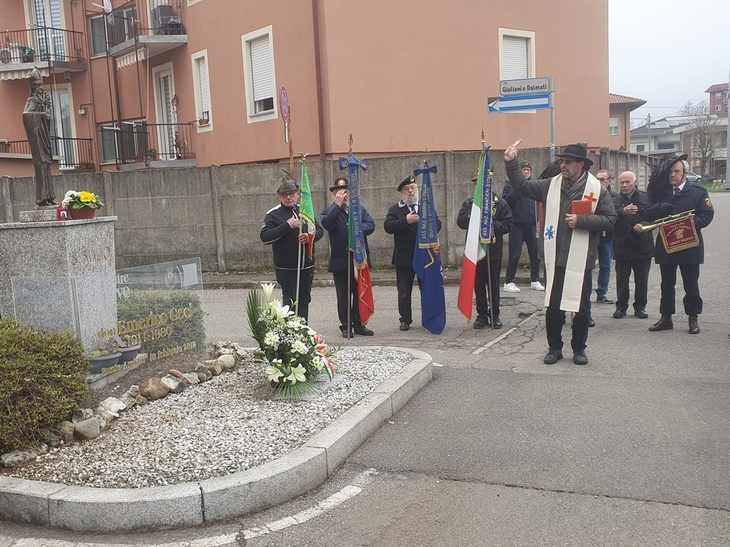 Le celebrazioni del Giorno del Ricordo si sono aperte, come ogni anno, a Borsano, con la messa celebrata nella chiesetta di Sant’Antonio dal parroco don Marco Mauri. Poi i rappresentanti di istituzioni, forze dell’ordine e associazioni si sono spostati nello spazio dedicato a don Emerico Ceci, nel Villaggio dei Giuliani e Dalmati, voluto dall’allora sindaco Gian Pietro Rossi, che accolse un importante gruppo di profughi.
