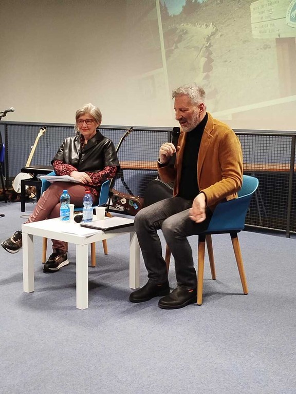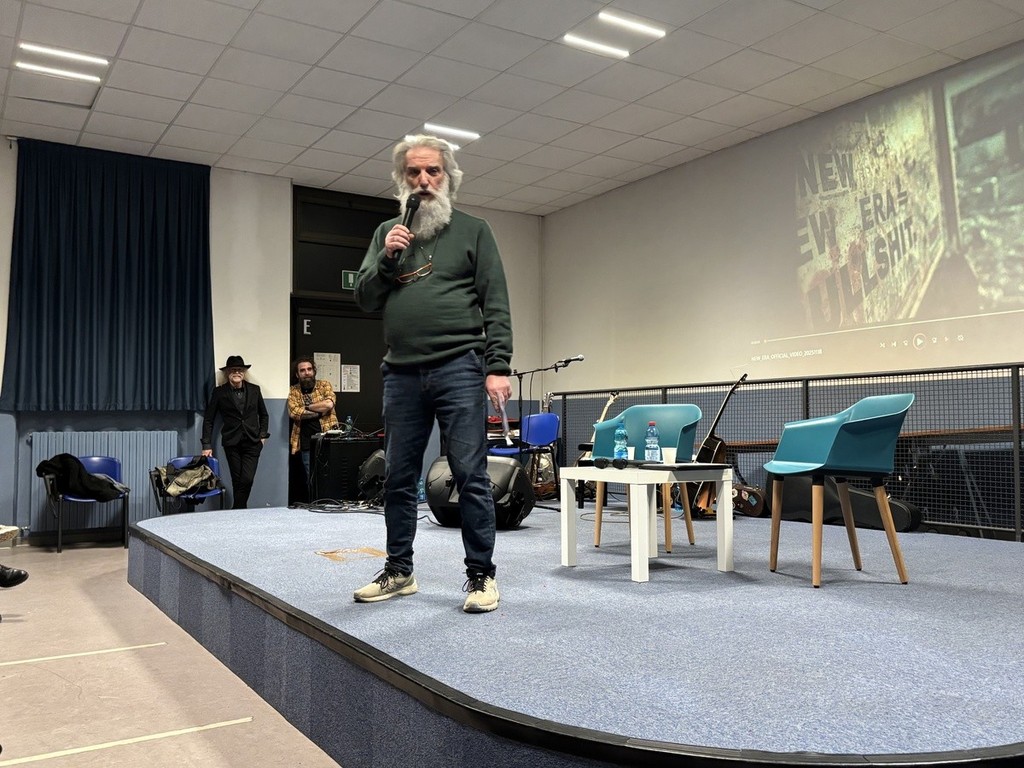 Prima di mettersi "on the road", però, il pensiero non poteva che andare a Gabriele Giorgetti, il ventiquattrenne al quale la comunità fagnanese darà l'ultimo saluto sabato 14 in San Gaudenzio. A proporre un minuto di silenzio il sindaco Marco Baroffio. L'assessore alla Cultura Beppe Palomba ha poi introdotto l'autore e il direttore del Bustese Marilena Lualdi che dialogava con lui, oltre naturalmente alla band Tia Palomba Roots/Folk Duo con Adriano Mestroni. Il video di Tia Palomba ha subito immerso in America e solo successivamente ha svelato l'apporto dell'intelligenza artificiale, con l'auspicio di un uso saggio della tecnologia, contrapposto al rischio di esserne usati.
