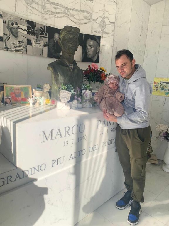 Il re del Cuvignone ha reso omaggio a Cesenatico al Pirata come accade ogni 14 febbraio dal 2004, il giorno in cui Marco chiuse le ali. Ma stavolta con lui e la sua compagna Bea c'era loro piccola Cloe di appena due mesi a cui un giorno diranno: «Uno come Pantani non ci sarà più»