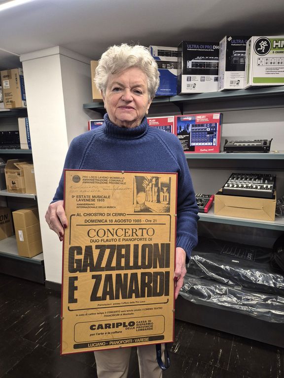«Con Sergio mi sono sposata nel 1963 e nel 1966, il 1° aprile, aprimmo l’attività commerciale in via Bernascone 16, il primo negozio di “Luciano Strumenti Musicali”, in una costruzione mezza diroccata presa dal comune, senza acqua né bagno. Sergio nel frattempo si era perfezionato in Svizzera dalle ditte Hug e Colombo, imparò a perfezione la tecnica dell’accordatura e conobbe pianisti celebri tra cui Arturo Benedetti Michelangeli. Io sono nata a Gallarate e vengo da una famiglia di commercianti, e prima di conoscere il mio futuro marito avevo lavorato come vetrinista da Verga e poi aperto cinque filiali Standa, tra cui quella di piazza Monte Grappa».