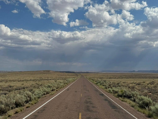 Sì, fin dai primi chilometri. Dopo Los Angeles siamo entrati immediatamente nei parchi della California. Joshua Tree National Park è stato il primo: luce violenta, sole, cielo azzurro e una prateria che sembra un forno ventilato. Gli alberi e le rocce modellate dal vento creano un ambiente quasi alieno, che disorienta e affascina allo stesso tempo. In Arizona abbiamo attraversato Petrified Forest National Park e la Painted Desert. Qui il paesaggio cambia anche restando fermi: tronchi pietrificati, colori stratificati, orizzonti che sembrano muoversi. Poi la Monument Valley, talmente iconica da sembrare irreale, sospesa tra geografia e immaginario.