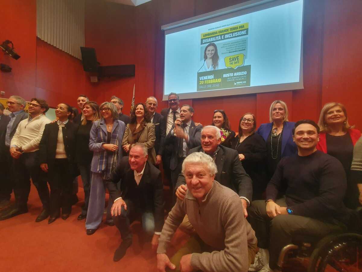 Amministratori locali, associazioni del terzo settore, cittadini: sala Tramogge stracolma a Busto Arsizio, venerdì, per la serata con il ministro per le Disabilità Alessandra Locatelli organizzata dal consigliere regionale leghista Emanuele Monti.