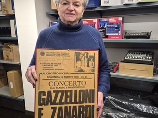 «Con Sergio mi sono sposata nel 1963 e nel 1966, il 1° aprile, aprimmo l’attività commerciale in via Bernascone 16, il primo negozio di “Luciano Strumenti Musicali”, in una costruzione mezza diroccata presa dal comune, senza acqua né bagno. Sergio nel frattempo si era perfezionato in Svizzera dalle ditte Hug e Colombo, imparò a perfezione la tecnica dell’accordatura e conobbe pianisti celebri tra cui Arturo Benedetti Michelangeli. Io sono nata a Gallarate e vengo da una famiglia di commercianti, e prima di conoscere il mio futuro marito avevo lavorato come vetrinista da Verga e poi aperto cinque filiali Standa, tra cui quella di piazza Monte Grappa».