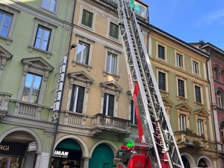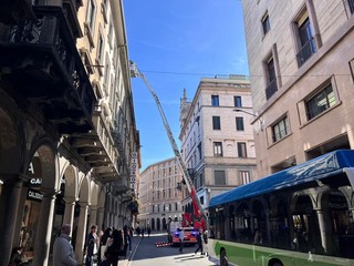 Un'autoscala dei vigili del fuoco in pieno centro si fa notare, soprattutto di sabato mattina.