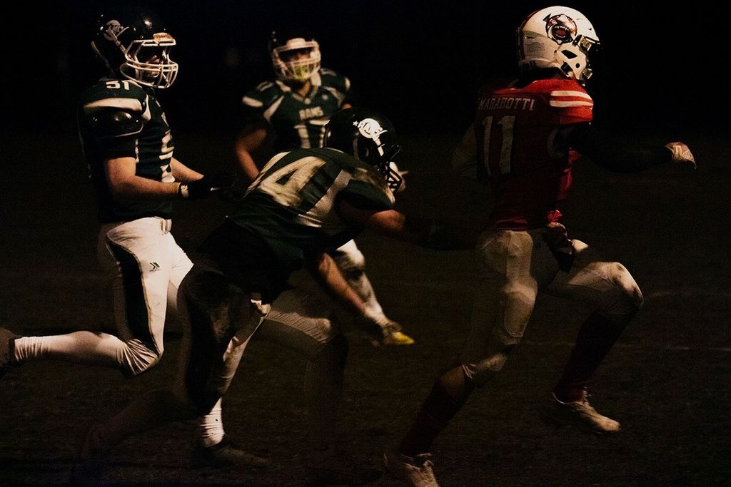 La reazione dei padroni di casa è immediata. Il quarterback Fabio Ferrari orchestra l’attacco con sangue freddo, trovando connessioni con la sua batteria di ricevitori e affidandosi alle corse elettriche del funambolico Guido Marabotti. È proprio un passaggio di Ferrari per Marabotti a violare l’endzone milanese. Il punto addizionale fallito impedisce però l’aggancio: si va al riposo sul 6-7 per gli arieti biancoverdi.