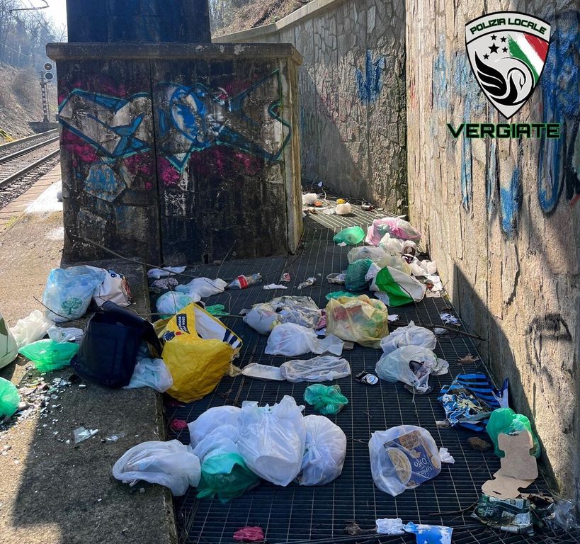 Da alcuni giorni gli agenti della polizia locale di Vergiate stavano monitorando l'indecorosa situazione ambientale che si era venuta a formare nei pressi di un viadotto a margine della linea ferroviaria tra le stazioni di Mornago e Varano Borghi: centinaia di sacchetti di plastica della spazzatura, contenenti rifiuti domestici, abbandonati, gettati alla rinfusa e disseminati tra la vegetazione e addirittura ai margini dei binari, non senza qualche rischio anche per la sicurezza.